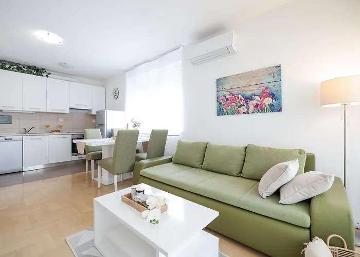 A Cozy Niko Apartment - Private Parking And Balcony apartman közvetlen hozzáférést biztosít a Kod Supermarketa Kaufland területéhez, továbbá kilátást nyújt a belső udvarra. A vendégek a Pozdrav Suncu területét 2 kilométeren belül elérhetik, a Sz. Anasztázia-székesegyház pedig körülbelül 1 km-re van.
